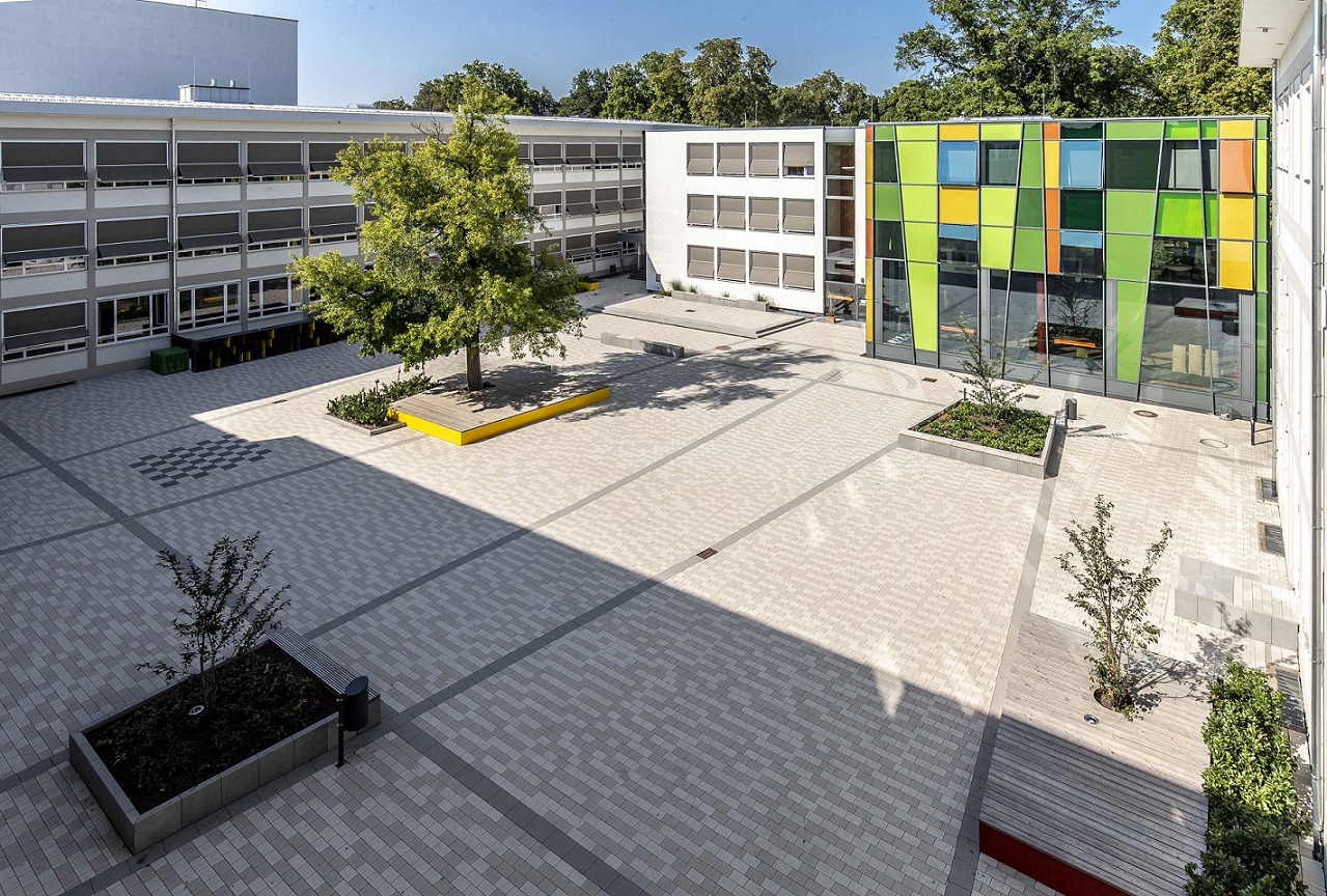 Für Kinder gehört Bewegung im Alltag dazu. Umso wichtiger ist es, dass sie in der Schule und in den Kitas genügend Raum für Bewegung haben. Ein Schulhof der Zukunft benötigt Freiraum, Platz zum Spielen, zum Rennen und zum Austoben. Bei der Gestaltung, der Planung und der Sanierung eines Schulhofs wird deshalb auf verschiedene Kriterien geachtet. Die Pausenhofgestaltung hat neben ästhetischen Aspekten noch viele weitere Betrachtungswinkel. Grünflächen und grüne Elemente sind wichtig für eine naturnahe Gestaltung, sodass die Schüler und Schülerinnen zum Spielen und Entdecken animiert werden. Für einen grünen Schulhof können Rasenflächen, Gärten, Bäume, Blumen und Biotope umgesetzt werden. So können die Schüler und Schülerinnen die Natur besser kennen lernen und sich weiterentwickeln. Ein Schulhof, der neben einer Grünfläche, auch noch bepflastert ist, bietet Platz für Sport, Projekte und Veranstaltungen. So entsteht eine Balance aus Pflastersteinen und Grünfläche. Ein Betonpflaster bietet Fläche für Basketballkörbe, Tischtennisplatten, Sitzmöbel oder für die kreative Entfaltung durch Kreidebilder.