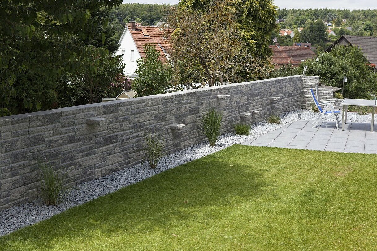 - Aufbau hinterfüllt bis 150 cm Höhe mit Hinterbeton, andere Höhen auf Anfrage
