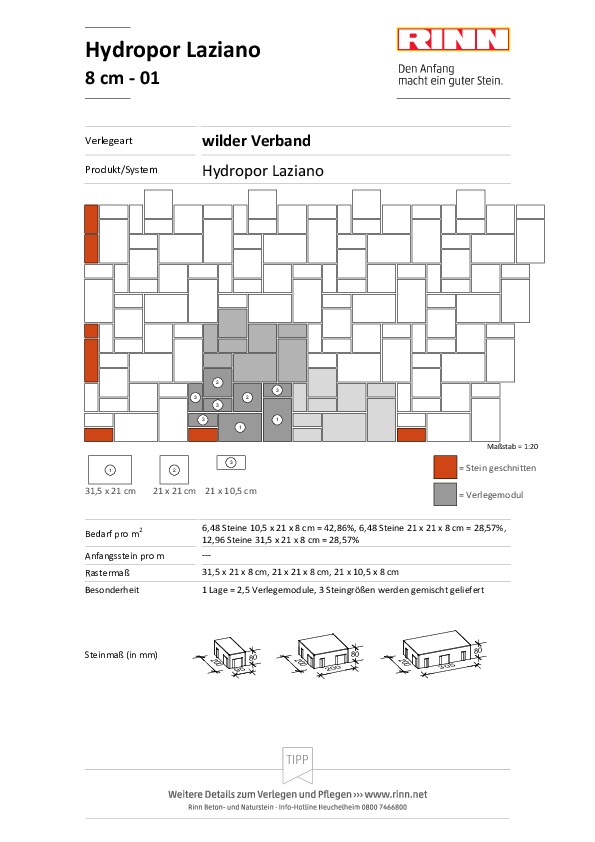 - Drei Steingrößen werden lagenweise gemischt geliefert, Einzelformate nicht lieferbar