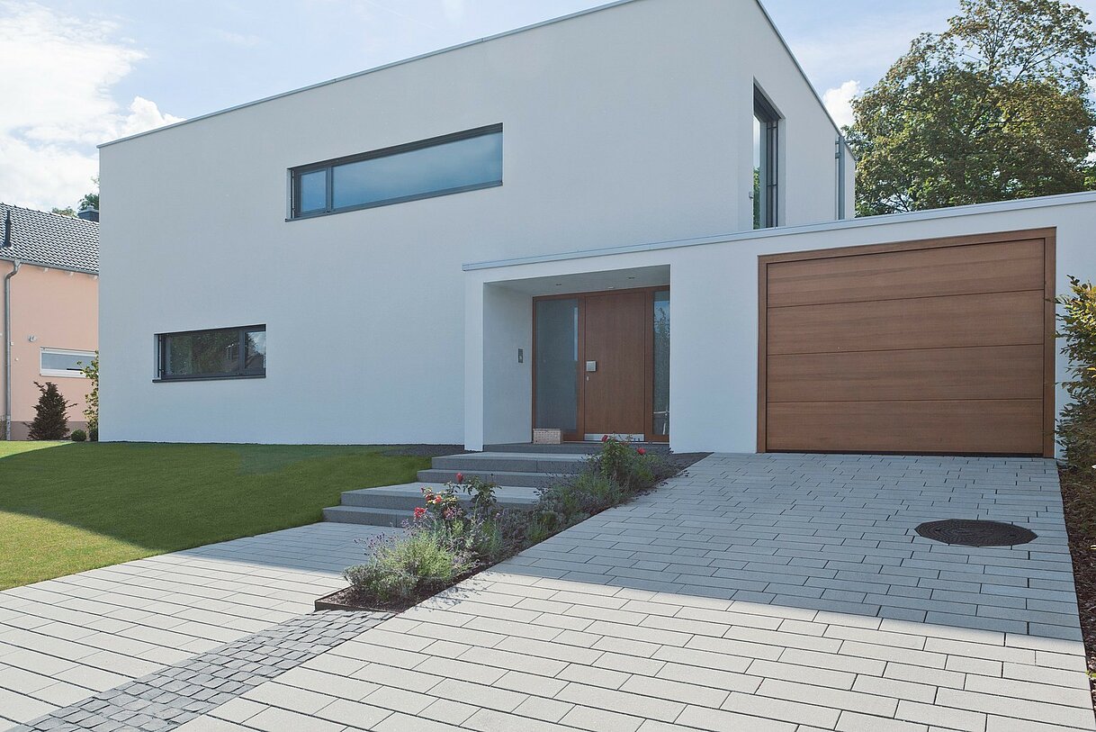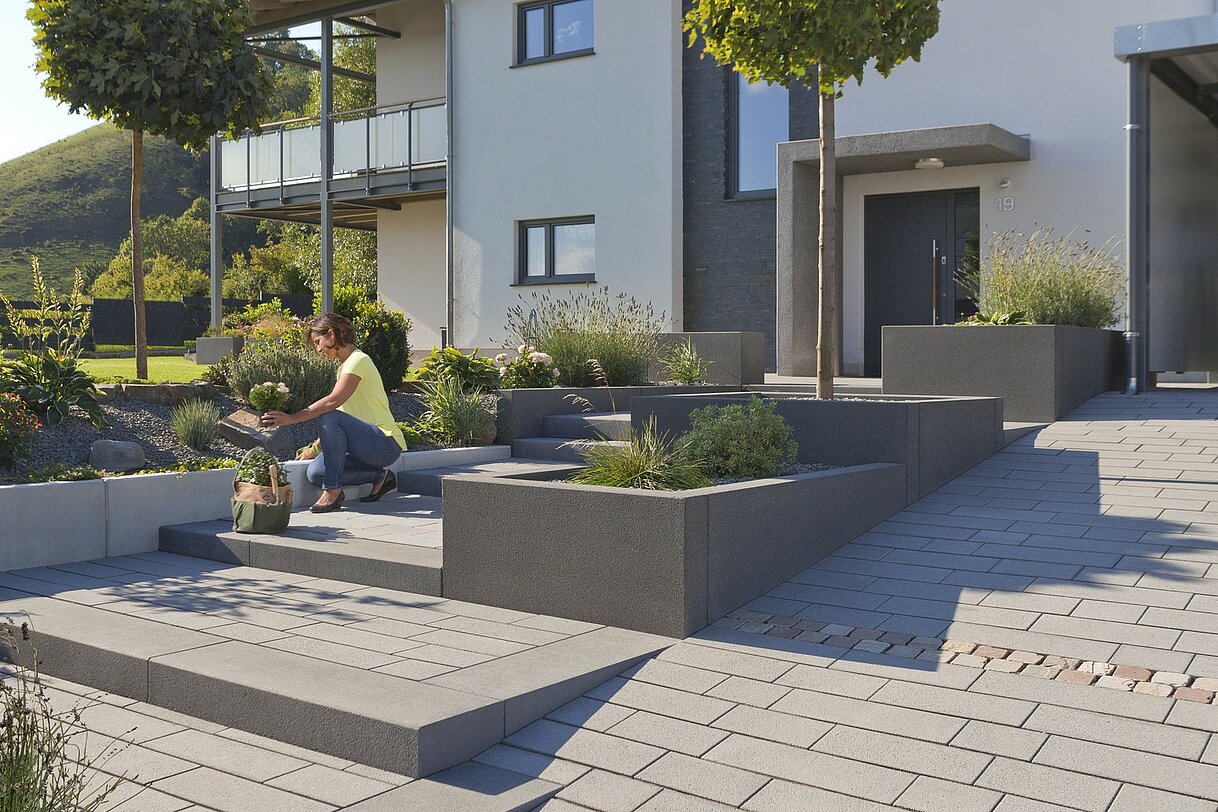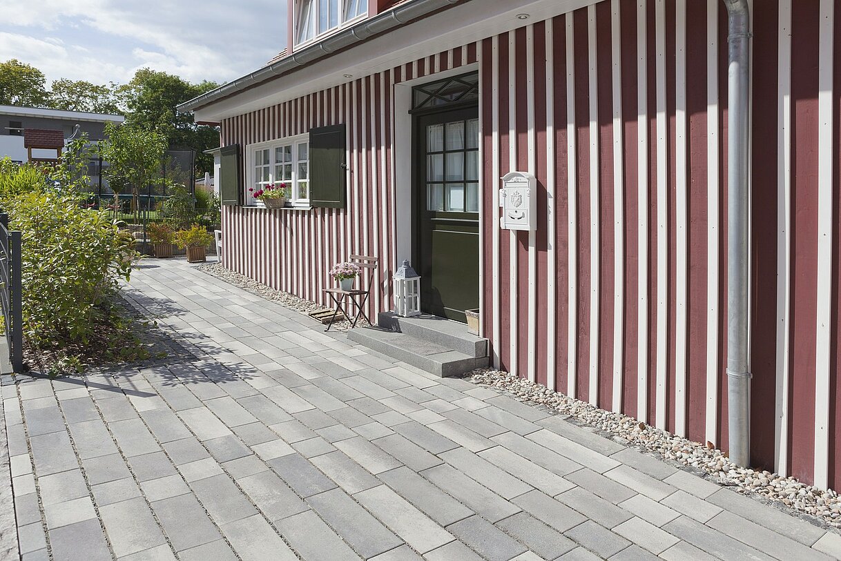 Der cleane, innovative Look des Hydropor Padio passt gut zu einem modernen Baustil mit geradlinigen Flächen. Die vier Steingrößen in 20 cm Steinbreite eignen sich für große Einfahrten, Innenhöfe oder Plätze und werden wie Bahnenware linear verlegt.