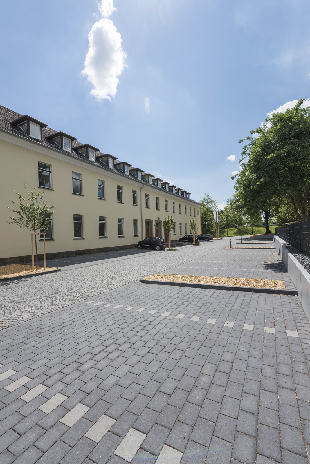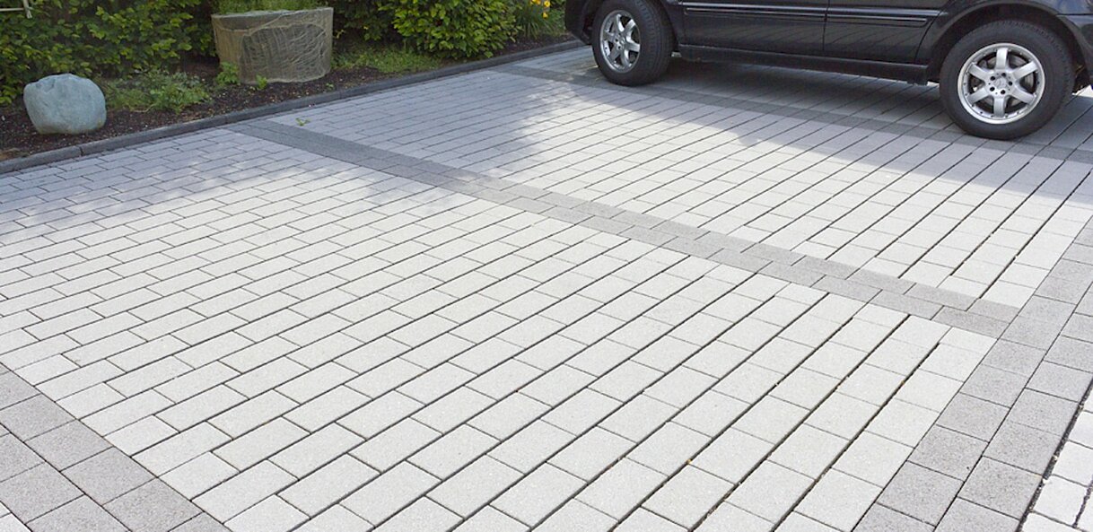 Nachhaltiges Ökopflaster mit breiter Fuge.