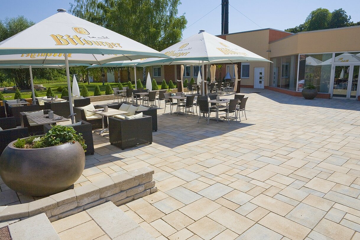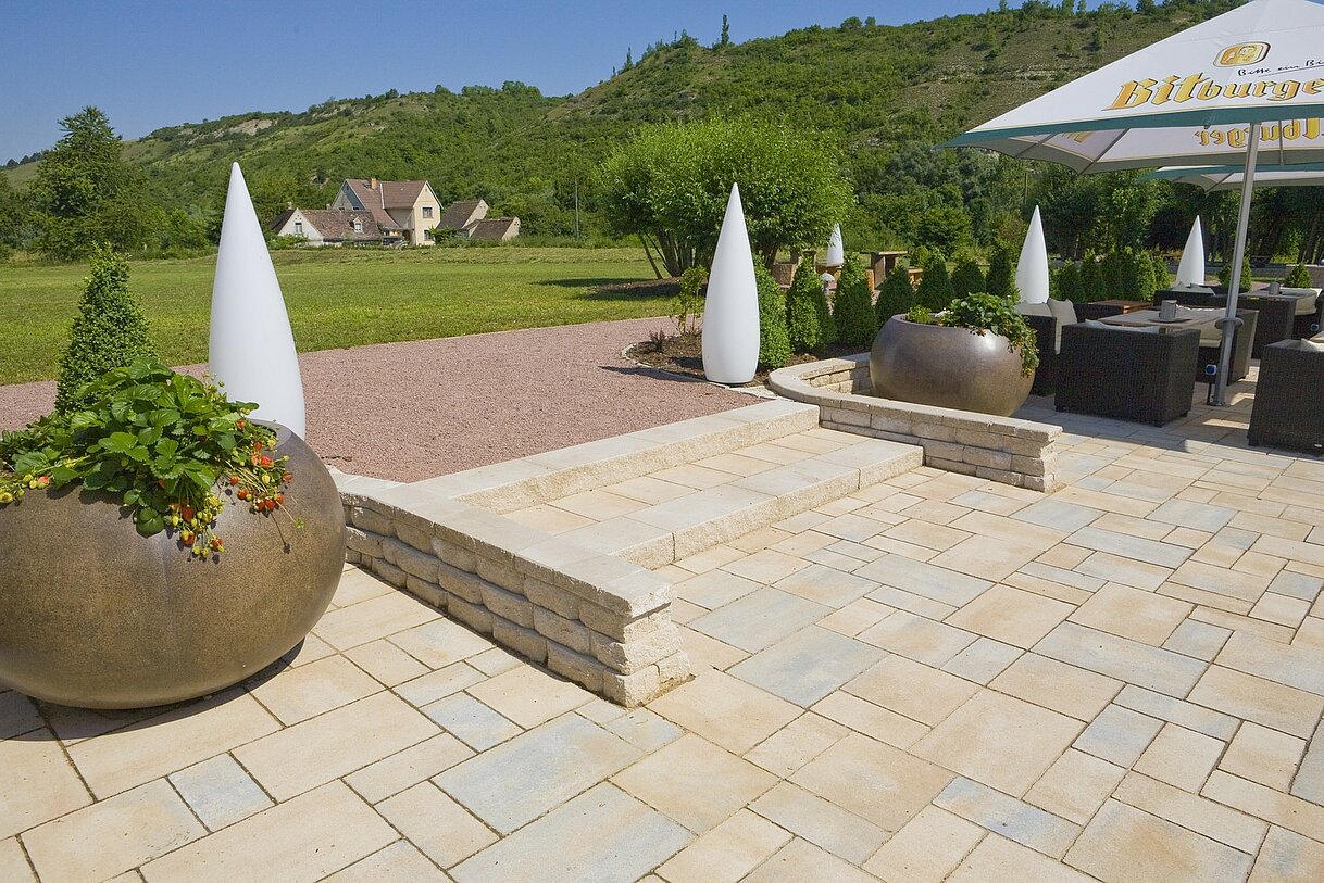 Medino Platten werden in drei Steinformaten passend für eine Verlegung im wilden Verband geliefert. Die Art der Steinkante hängt von der gewählten Oberfläche ab. Platten mit color Oberfläche werden mit Minifase geliefert. Die Steinkanten der rustica Oberfläche sind dagegen sehr schön bossiert und besitzen einen rustikalen Charakter. Die natürlichen Farbverläufe der Medino Platten harmonieren sehr gut mit einem mediterranen Ambiente und können perfekt mit vielen Produkten des Rinn Sortiments kombiniert werden.