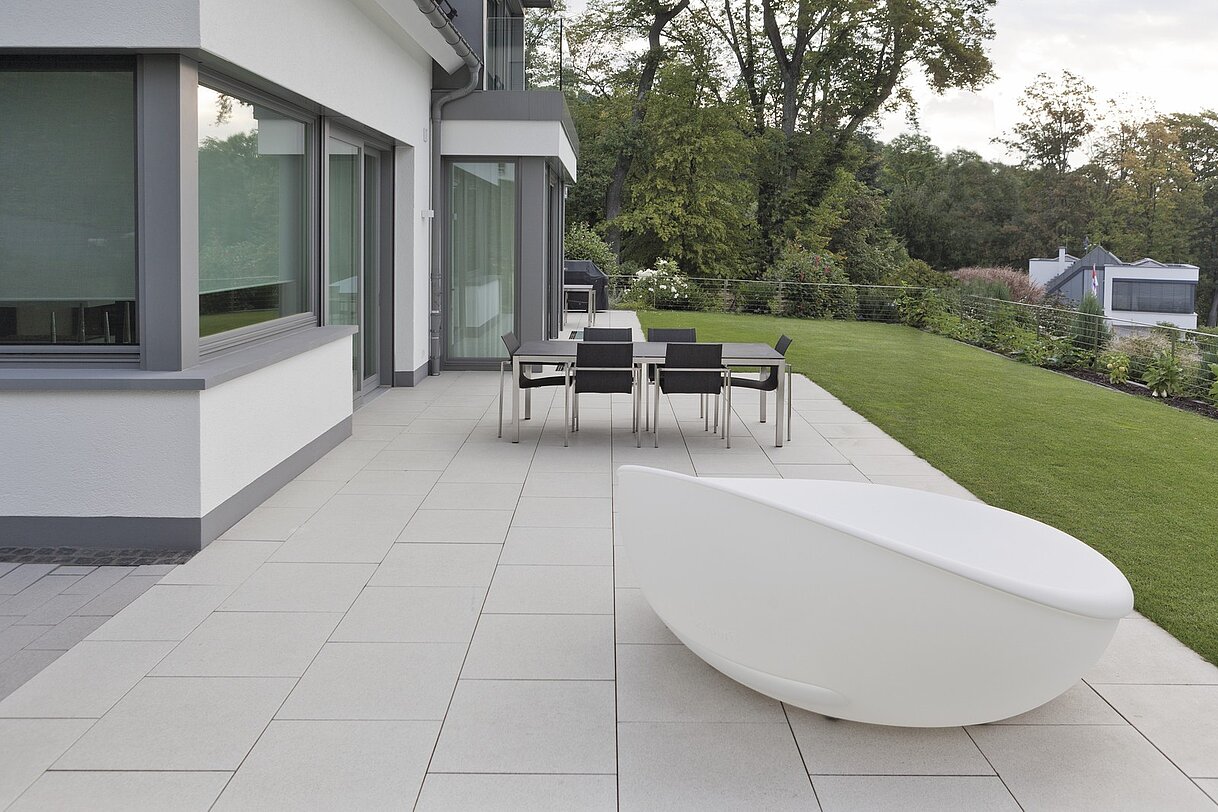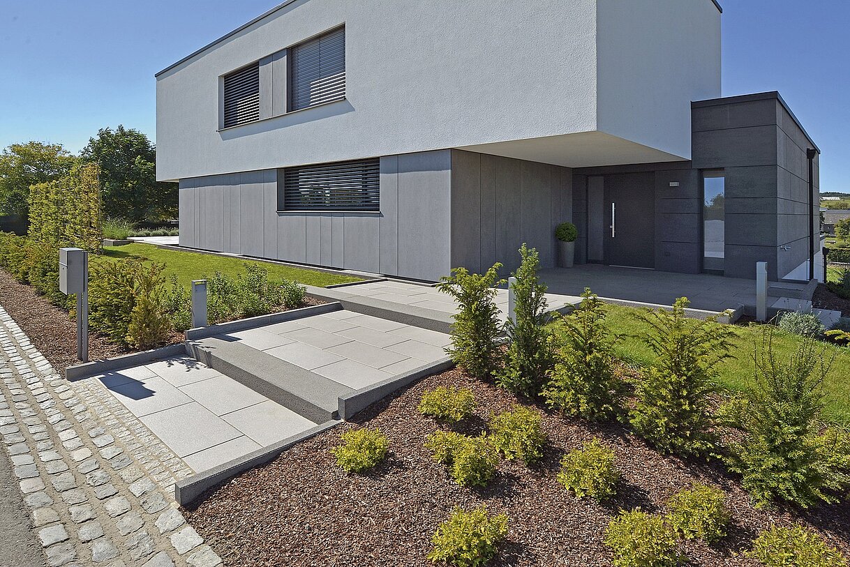 silkstone® Platten beeindrucken durch ihre außergewöhnlich feine Oberfläche und ihr großzügiges Format. Mit 100 x 50 cm besitzen sie eine große Gestaltungskraft und erzeugen gemeinsam mit ihrer homogenen Oberflächenoptik eine angenehme und ruhige Flächenwirkung. silkstone® Platten werden oft im Zusammenhang mit moderner Architektur eingesetzt. Die Platten korrespondieren mit passenden Produkten aus den Sortimentsbereichen Stufen, Podeste, Pflanzgefäße und Sitzblöcke.