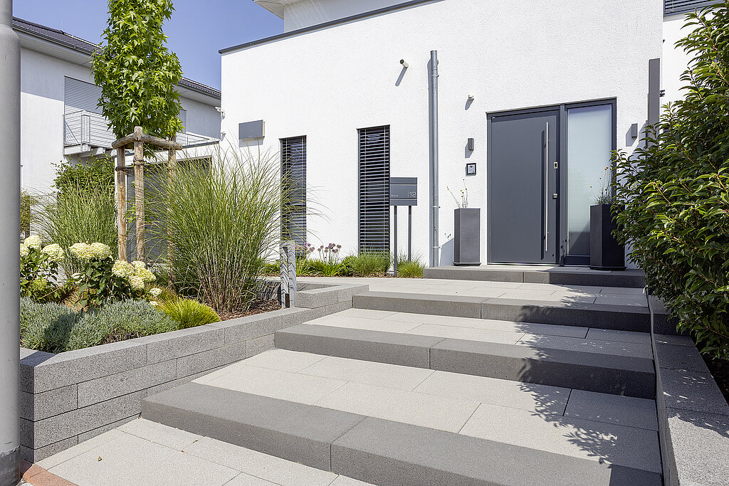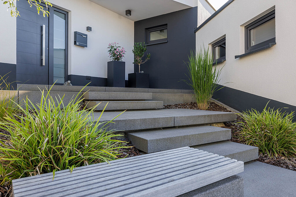 Sie möchten Ihren bestehenden Eingang grundlegend neugestalten? Lassen Sie sich zuerst inspirieren von zahlreichen Bild-Beispielen für gelungene Eingänge und Treppen, die mit Rinn Produkten entstanden sind.