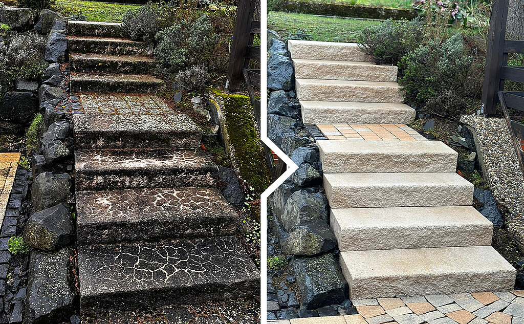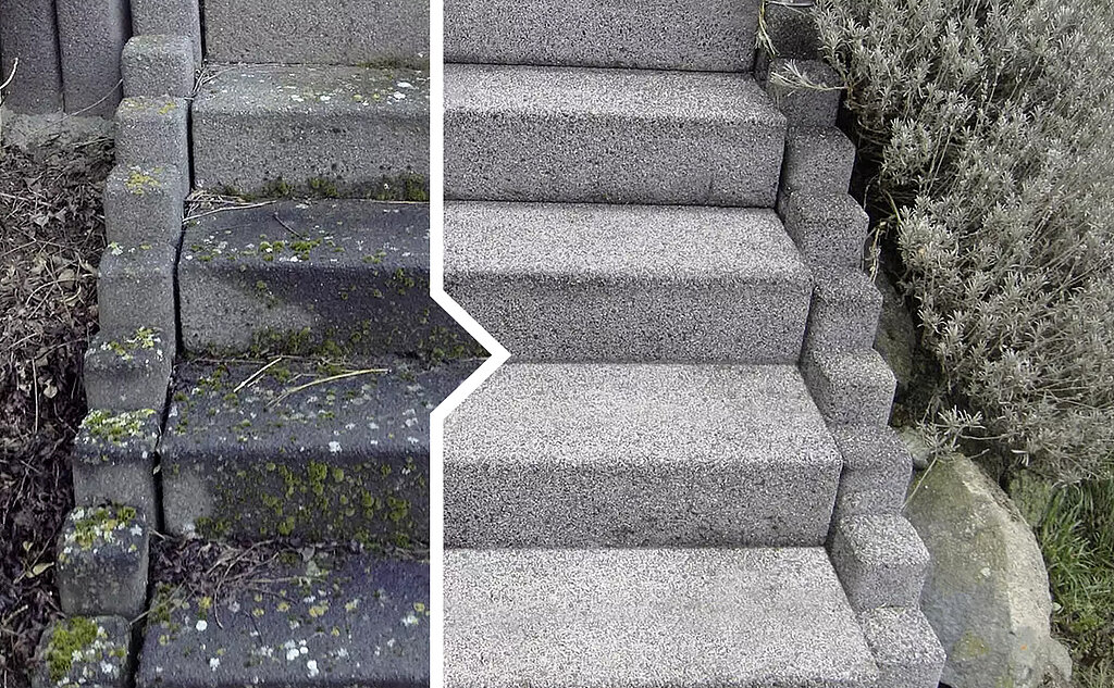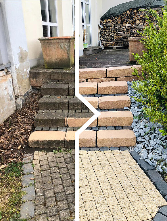 Es müssen nicht immer neue Steine werden. Erleben Sie, wie beeindruckend Ihre Treppe nach einer professionellen Pflasterreinigung aussehen kann. Schauen Sie sich unsere Vorher-Nachher-Beispiele an und lassen Sie sich von dem frischen, sauberen Erscheinungsbild begeistern.