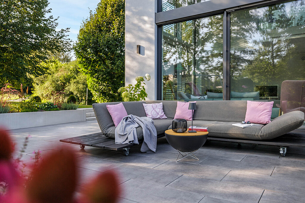 Die Terrasse ist im Garten der Dreh- und Angelpunkt. Hier spielt sich im Sommer das Leben ab. Entsprechend möchten Sie sich als Bauherr dort wohlfühlen. Immer öfter verschmelzen Wohnbereich und Terrasse miteinander durch Bodenbeläge in Holzoptik, gemütliche Outdoor-Möbel und passende Deko-Elemente. Für das Outdoor-Wohnzimmer hat Rinn die trendstone Terrassenplatten entwickelt, die vor allem durch ihre modernen und naturnahen Designs auffallen.